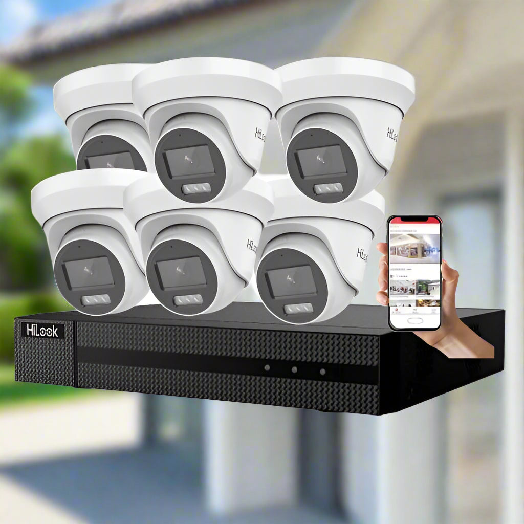 HiLook CCTV Kit,8 Channel Network Recorder, 6 x 6MP Dual IR Turret Cameras